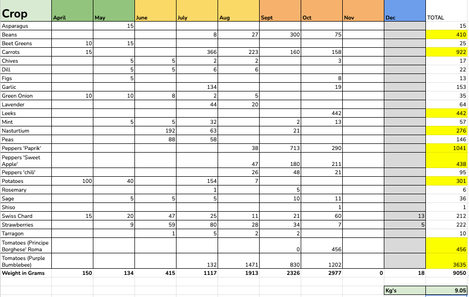 In my own garden, I am very proud of growing just over 9 Kgs (about 20 lbs) of food on less than 178 square feet in the middle of a city. Tomatoes and peppers grew in great abundance and here in Vancouver we had incredibly mild and “normal” year. While Canada and BC experienced the worst wild fires we have ever seen, Vancouver was spared the worst of the effects of climate change this year.